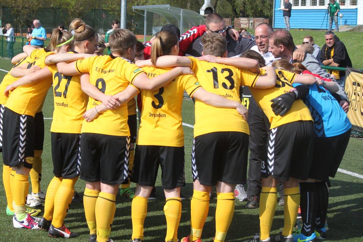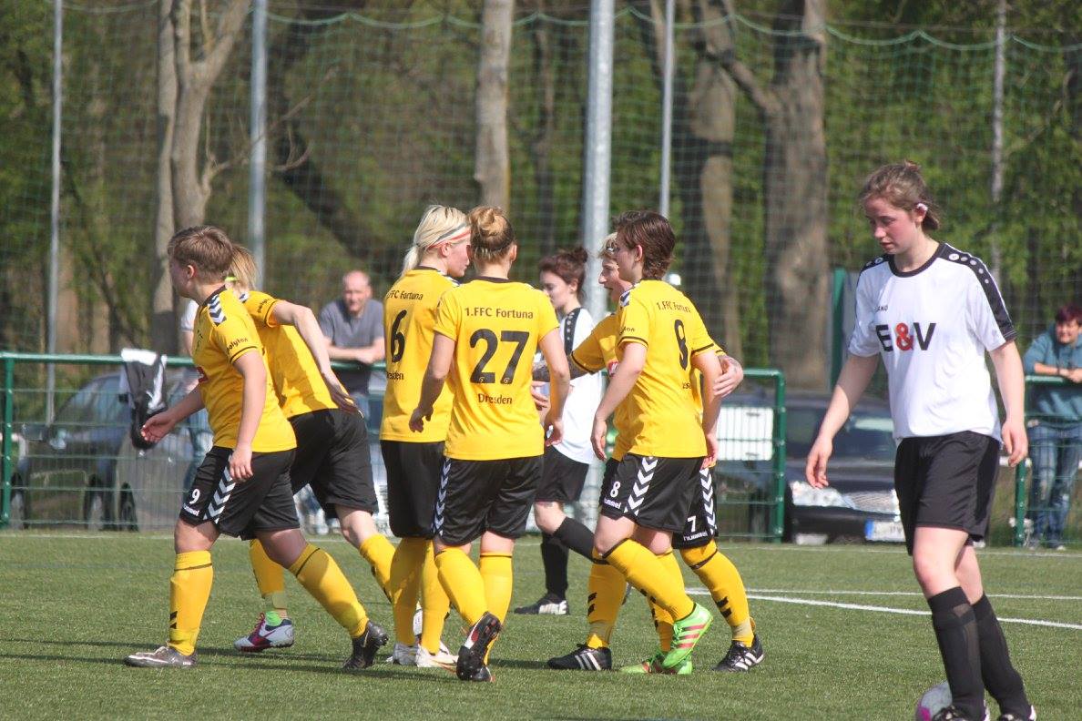Die Gastgeber mit der ersten Offensivaktion, Stephanie Winkler per Kopf, aber Florentine Rudloff im Tor ohne Probleme. Danach ein langer Ball aus der eigenen Hälfte, der Gegner schlägt drüber, Jessica Schleusing ist durch und erzielt die Führung. In den nächsten Minuten beide Mannschaften mit dem Versuch weitere Tore zu erzielen. Kia Bartsch und Fenja Schönball für die Hausherrinnen (beide Situationen kein Problem für Florentine), sowie auf der Gegenseite Jessica Schleusing, Marion Sattler und Kathleen Freude. Dann wurde es aber mal richtig gefährlich. Die auffälligste Leipzigerin, Stephanie Winkler, zieht ab und der Ball klatscht an die Latte. Danach ein Freistoß von Juliane Jonas aus dem Mittelkreis. Der Ball fliegt in den 16er, wo Marion Sattler einfach nur das Bein hebt und den Ball per " Hackendirektabnahme" an der Torhüterin vorbei im Kasten unterbringt. Wieder Stephanie Winkler auf dem Weg zu unserem Tor. Doch „Flo“ verkürzt den Winkel schön und kann per Fußabwehr klären. Durchaus auch mit einiger Gefahr zweimal die Nummer neun der Messestädterinnen. Janina Chambule setzt sich zweimal im Strafraum durch, scheitert aber beide Male an der aufmerksamen Torhüterin. Nach dem Seitenwechsel dümpelte das Spiel erst einmal dahin. Leipzig bemüht, aber ohne Gefahr und Dresden im Pech (u.a. Schuss von Lisa Richter wird zur Ecke geklärt). Trotzdem war das nächste Tor nicht unverdient. Ein Angriff der Leipzigerinnen wird im Mittelfeld abgefangen. Caroline Nolting legt für Jessica Schleusing auf, kurze Drehung und drin ist er. Eintracht dann auch mit dem Versuch nach vorne zu spielen, aber die Durchschlagskraft fehlte. Somit fiel folgerichtig das vierte Tor für uns. Doppelpass zwischen Marion Sattler und Nicole Zesewitz. Caroline Nolting bekommt den Ball sauber in den Lauf und schiebt ihn durch die Beine der herauseilenden Torhüterin ins Tor ein. Eine Viertelstunde war nur noch zu spielen und ein vier Tore Vorsprung sollte doch reichen. So war das „Ehrentor“ nach einer Ecke durchaus verdient, zumal sich die Torschützin Stephanie Winkler für ihr gutes Spiel damit selbst belohnen konnte. Mit der letzten Aktion im Spiel konnten die Gastgeber sogar noch auf 2:4 verkürzen (Torschützin Kira Bartsch). Zum erneuten Finaleinzug der Mannschaft "Herzlichen Glückwunsch" und viel Erfolg im Endspiel. Der Austragungsort für das Finale ist noch offen.