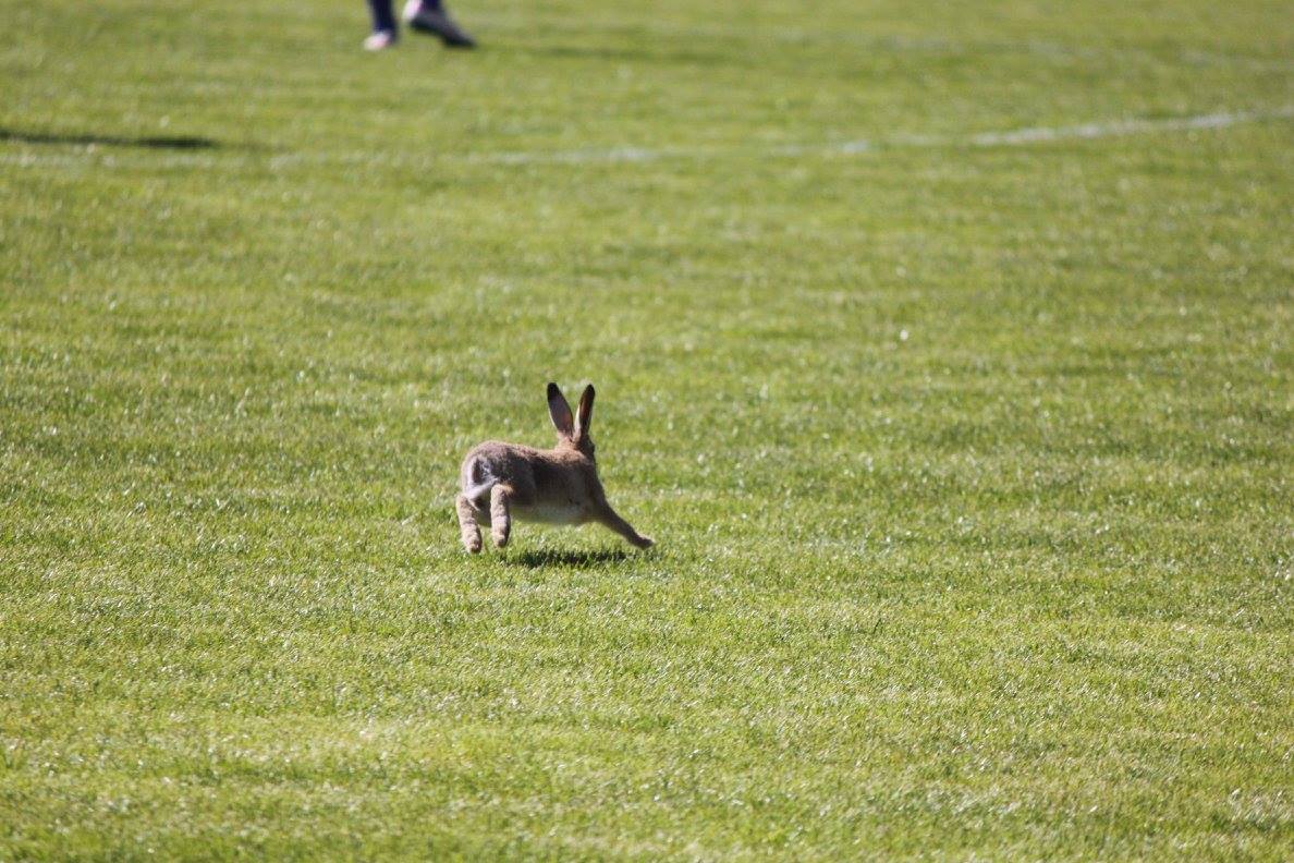 Während der ersten Halbzeit musste die Begegnung für einige Sekunden unterbrochen werden. "Meister Langohr" (ein Kaninchen mitten in Berlin) hatte den Platz gestürmt und rannte ein paar Runden, ehe er denn Ausgang wieder fand.