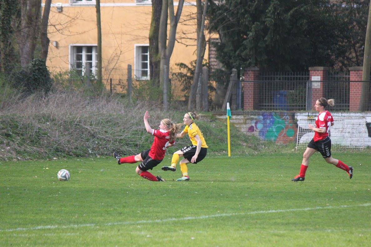 ... Jessica Schleusing ebenfalls für mehrere Minuten behandelt. Angesichts der nicht vorhandenen Wechselbank, die mitgereisten Spielerinnen Svantje Hagemann (verletzt) und Julia Winkler (im Aufbautraining) kamen als Ersatz nicht in Frage, gab es keine Möglichkeit auf Ausfälle zu regieren. Mit Anika Hatwig debütierte eine U17 Spielerin in der "Ersten" und machte ihre Sache im Spiel sehr gut. Trotz des kleinen Kaders wurde unsere Elf ihrer Favoritenrolle gegen den Tabellenletzten gerecht. Vom Anpfiff bis zum Abpfiff bestimmten wir das Geschehen auf dem Platz. Jessica Schleusing mit der ersten Möglichkeit. Dann ist Julia Eisold im Strafraum durch ihre Gegenspielerin nur noch durch ein Foul zu stoppen. Den fälligen Elfer versenkt Marion Sattler. Verdiente Führung mit Potenzial für mehr, aber Jessica zweimal mit Pech vorm Tor. Nach Wiederbeginn ist Fortuna noch deutlicher am Drücker. Nach einem Freistoß, getreten von Lisa Richter, der über das Tor ging kam der Auftritt unserer Nummer 10. Auf Linksaußen nimmt sie drei Gegner aus und passt in den 16er, wo Caroline Nolting nur noch einzuschieben braucht. Ohne die Leistung von Caroline zu schmälern (es gibt Leute die treffen in solch einer Situation den Ball nicht) gehört das Tor Jessica, die durch ihren energischen und kämpferischen Einsatz dieses erst ermöglichte. Ihre Leistung krönen konnte sie nach Zuspiel von Juliane Jonas, als sie das 3:0 erzielte. Erst Mitte der zweiten Hälfte der erste Versuch der Gastgeber, der aber kein Problem für Florentine wurde. Auch die anderen Möglichkeiten brachten keine wirkliche Gefahr. Schon mit mehr Potenzial aber ebenfalls ohne Erfolg unsere nachfolgenden Chancen durch Jessica, Julia, Anika H., Marion und Anika R.