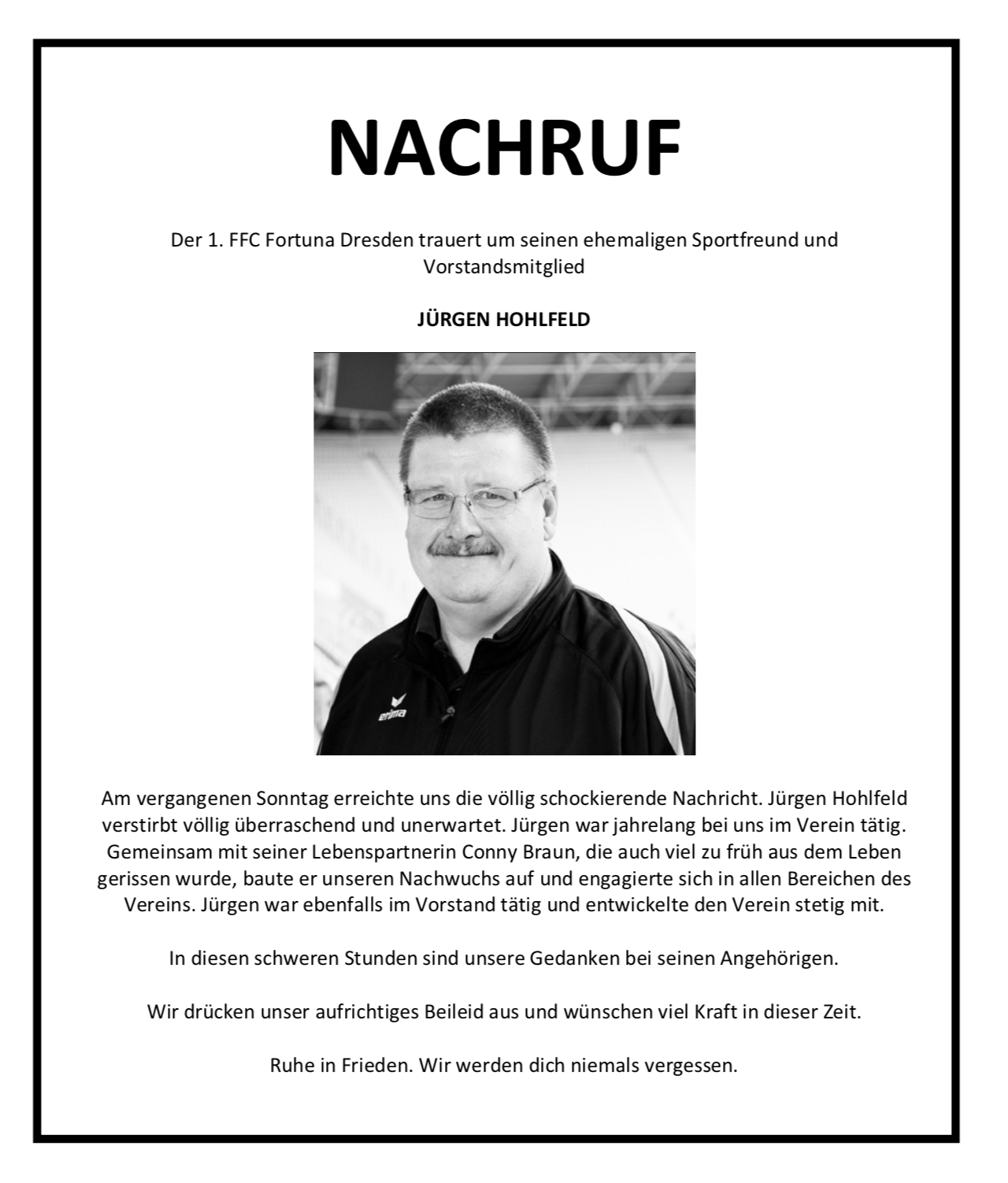 NACHRUF - Wir trauern um Jürgen Hohlfeld