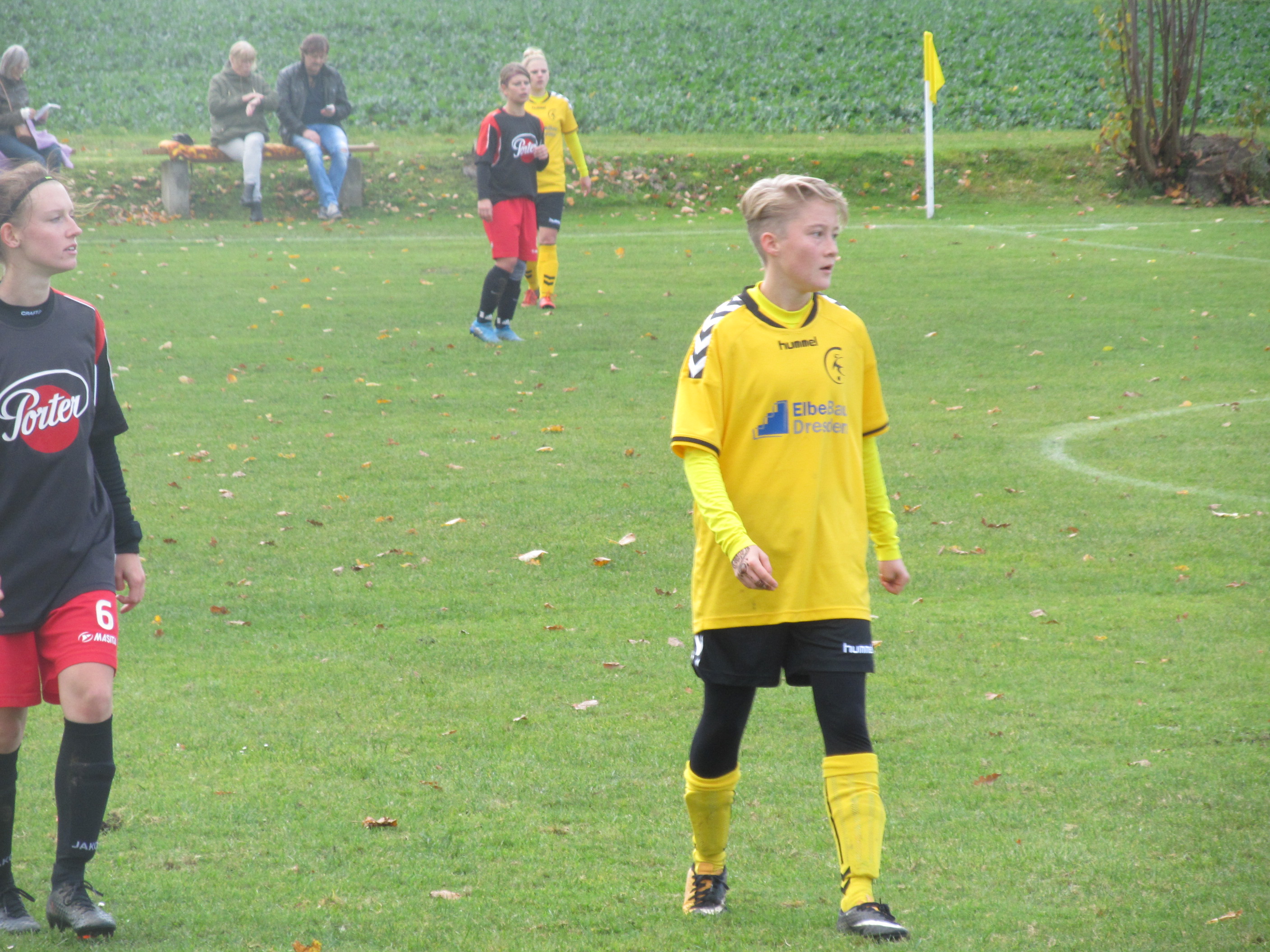 Unsere Mannschaft beherrschte in der 1. Halbzeit den Gegner, der nur wenige Offensivaktionen zeigte. Diese waren jedoch nicht ungefährlich. Chantal war aber immer auf der Hut und konnte alles, was aufs Tor kam souverän entschärfen. Auf der anderen Seite zeigte unsere Mannschaft ansehnlichen Offensivfußball. Mitte der ersten Halbzeit zappelte der Ball im Spitzkunnersdorfer Tor. Julia konnte eine Ecke direkt verwandeln. Leider hatte der sehr gute Schiedsrichter etwas dagegen und pfiff einen „Schupser“ an der Torhüterin als Foul, so dass das Tor nicht zählte.